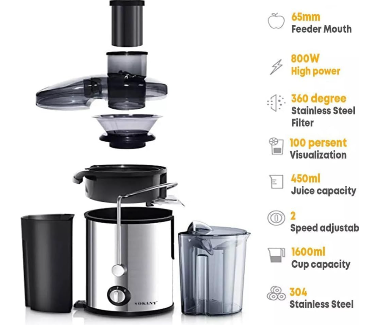 Shtrydhësi SOKANY SK-4000 është një pajisje e efektshme dhe e lehtë për përdorim për shtrydhjen e frutave dhe perimeve. Me motorin e fuqishëm 800W dhe dizajnin prej çeliku inox, ky shtrydhës ofron një produkt të lartë lëngji dhe ruan vitaminat dhe mineralet e nevojshme për pijet tuaja të shëndetshme.